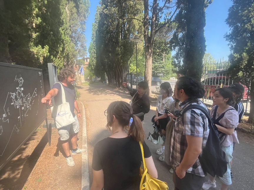 Next, the team ascended Palatine Hill, where the professor explained that it is the birthplace of ancient Rome, where, according to legend, Romulus, the founder of Rome, established the city. By visiting the palace ruins and archaeological sites on Palatine Hill, the team gained insights into the early history and culture of the Roman Empire. Under the professor's guidance, they witnessed the magnificent remnants of ancient palaces, igniting their passion for the protection and activation of architectural heritage.