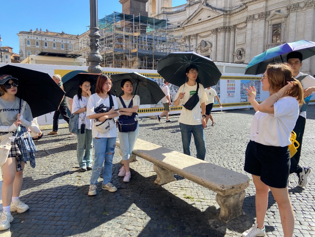 The professor from the University of Rome introduced that the Colosseum, built in AD 72, is one of the symbols of the ancient Roman Empire and was used for gladiatorial contests, animal hunts, and public spectacles. Team members learned about the construction techniques, functional layout, and historical background of the Colosseum, understanding its significant status in ancient Roman society. They were amazed by the grandeur and complex structure of the Colosseum, admiring the exceptional wisdom of Roman engineers and the superb craftsmanship of the workers.
